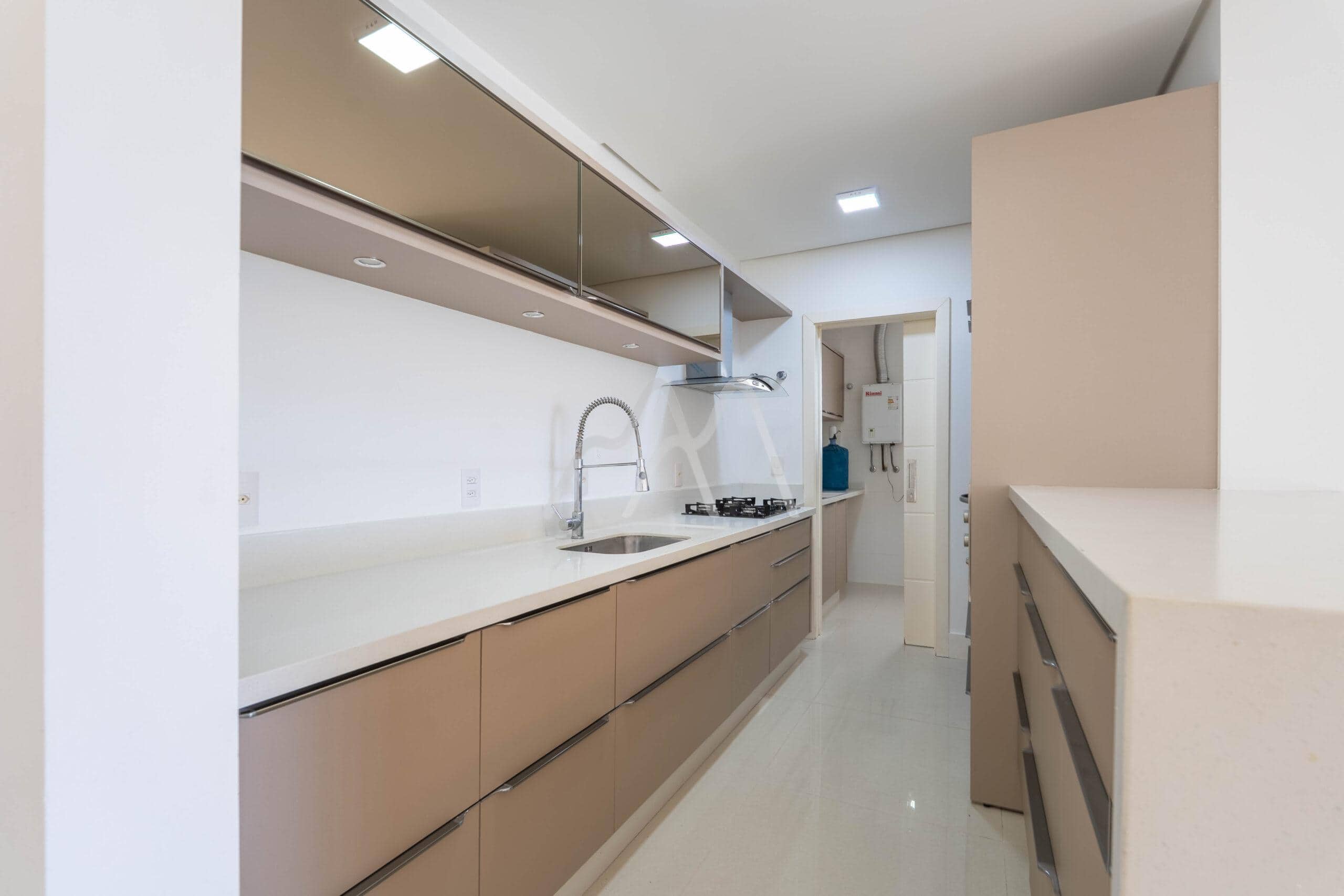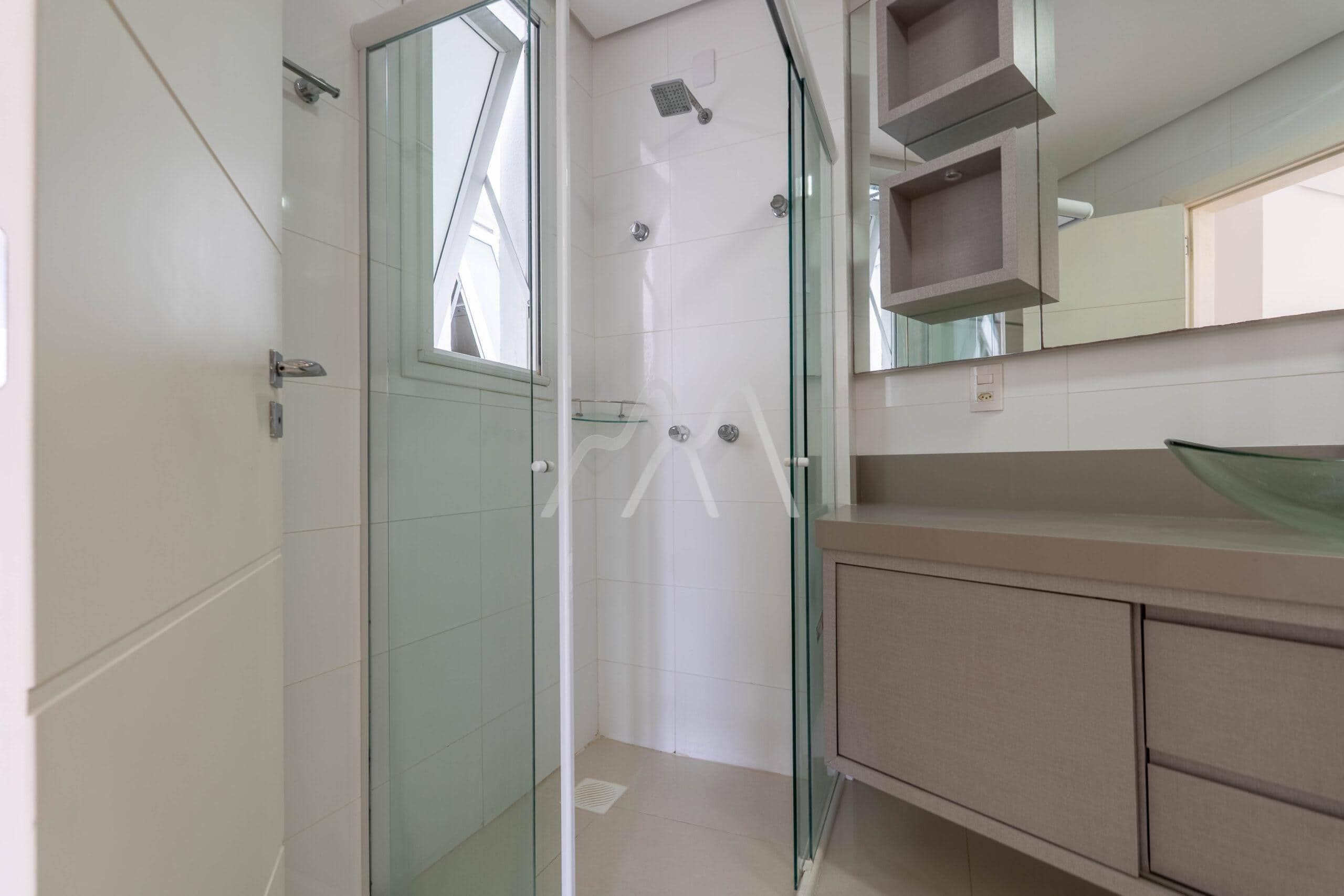 Apartamento com 123,68 m² de área privativa, com 3 suítes, 4 banheiros e ambientes bem distribuídos.