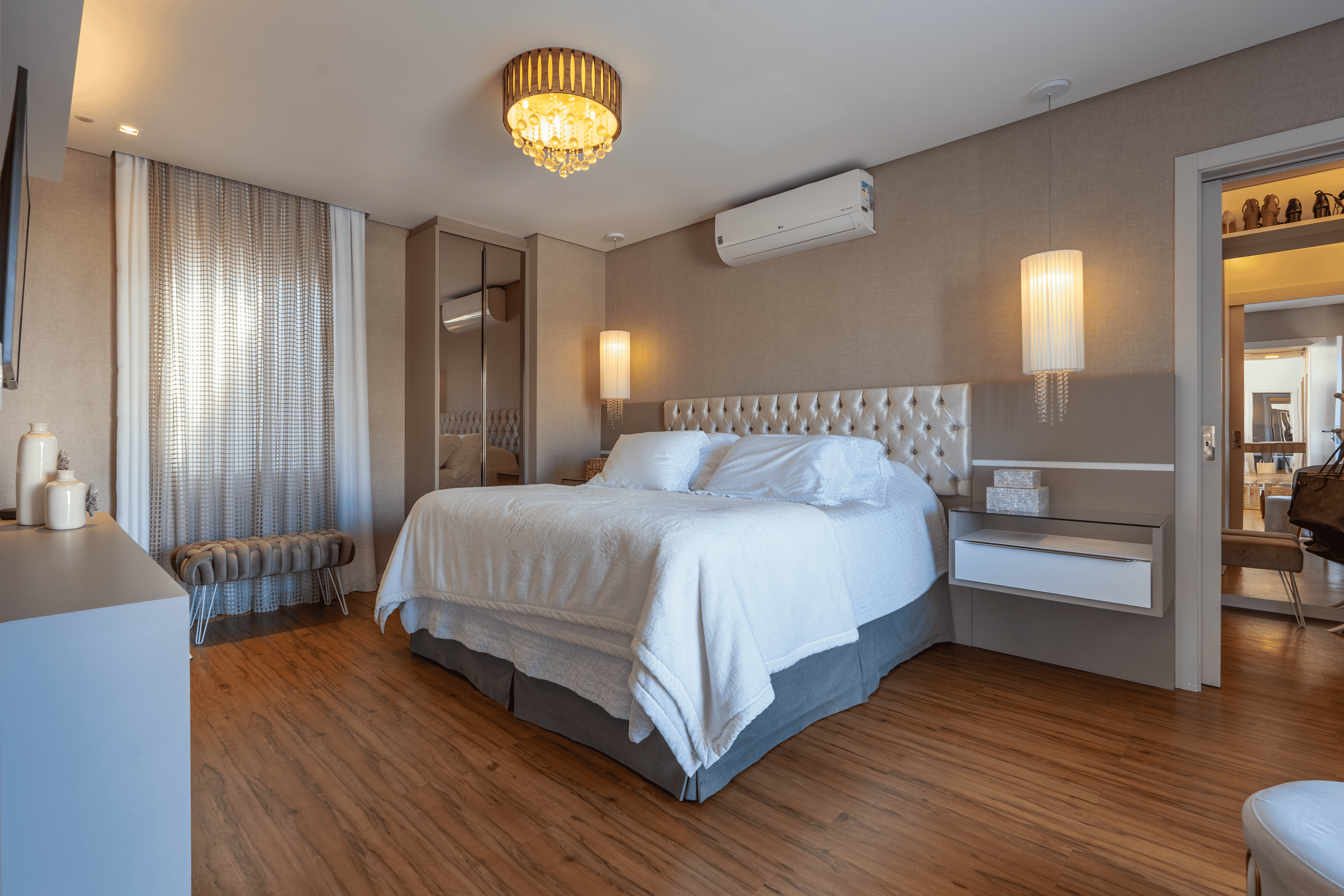 São 4 suítes, sendo uma no térreo, que traz praticidade e acessibilidade no dia a dia. Escritorio privativo, automação completa e placas solares