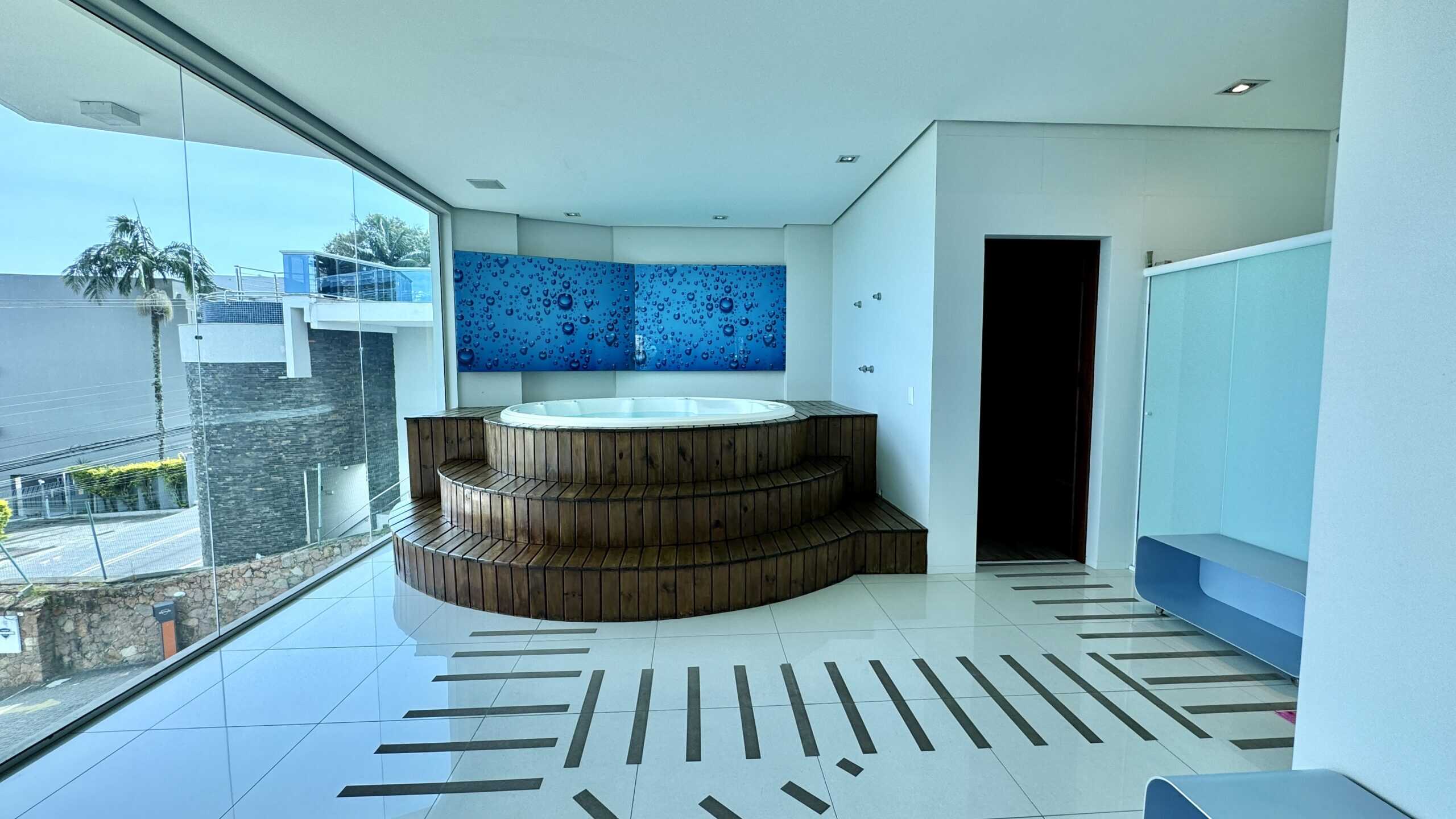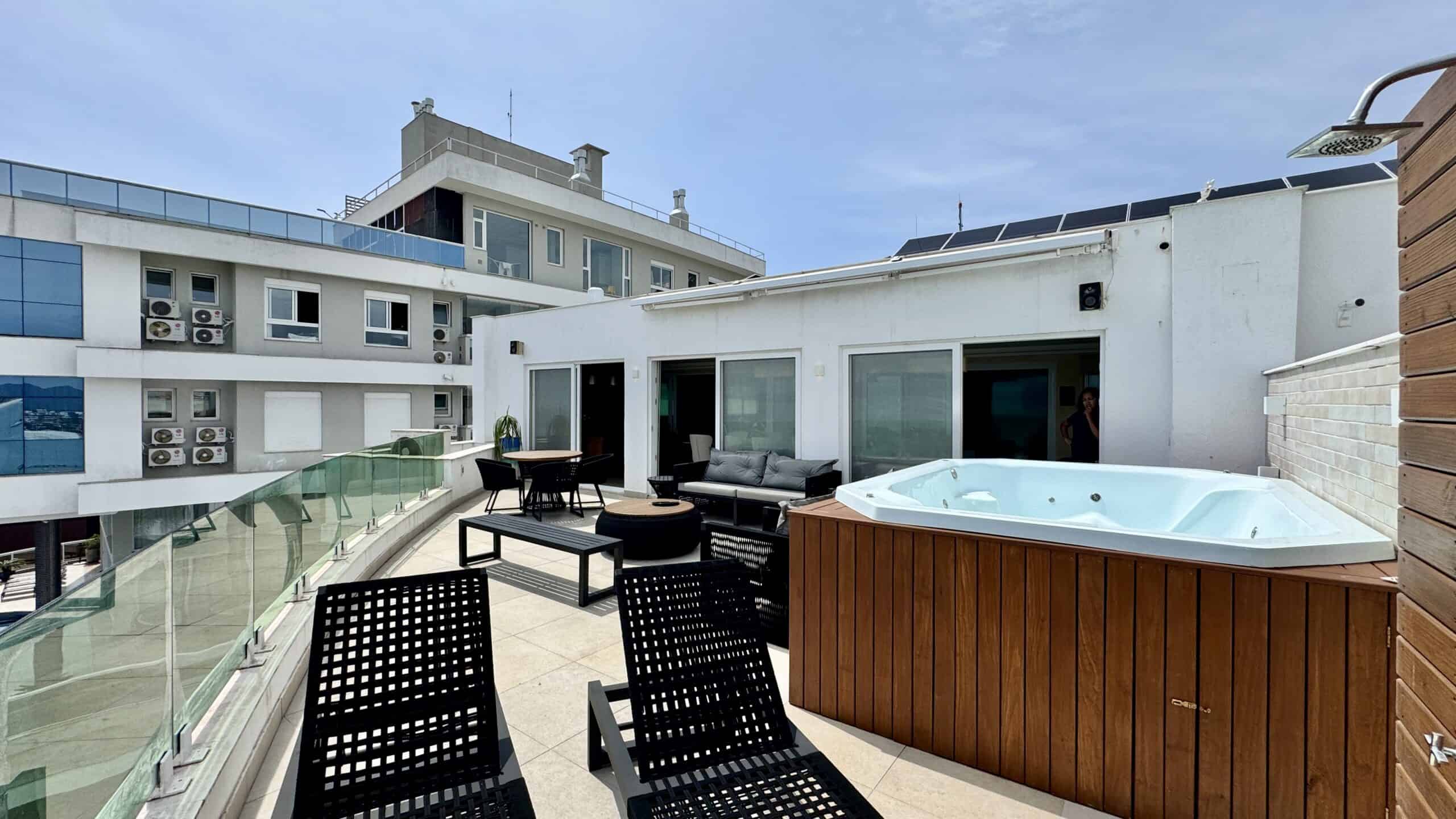 A área externa é um convite ao relaxamento, com jacuzzi para até 6 pessoas e uma vista encantadora.