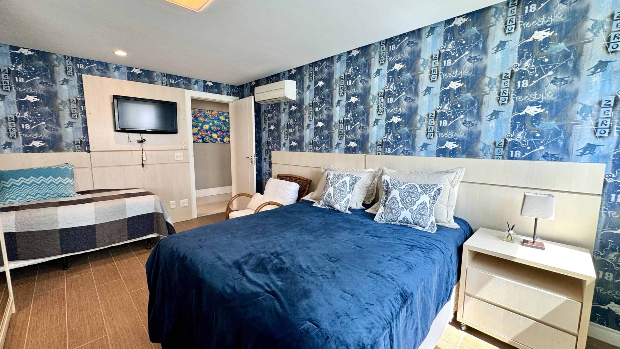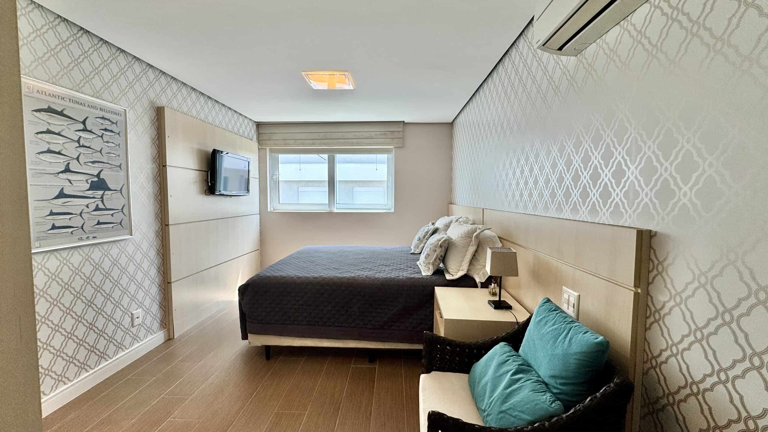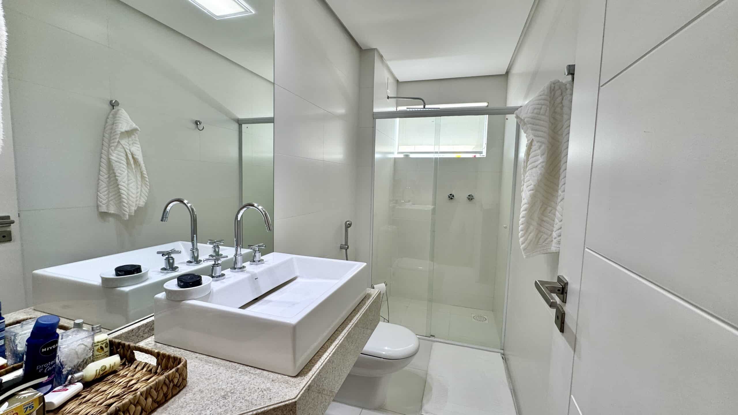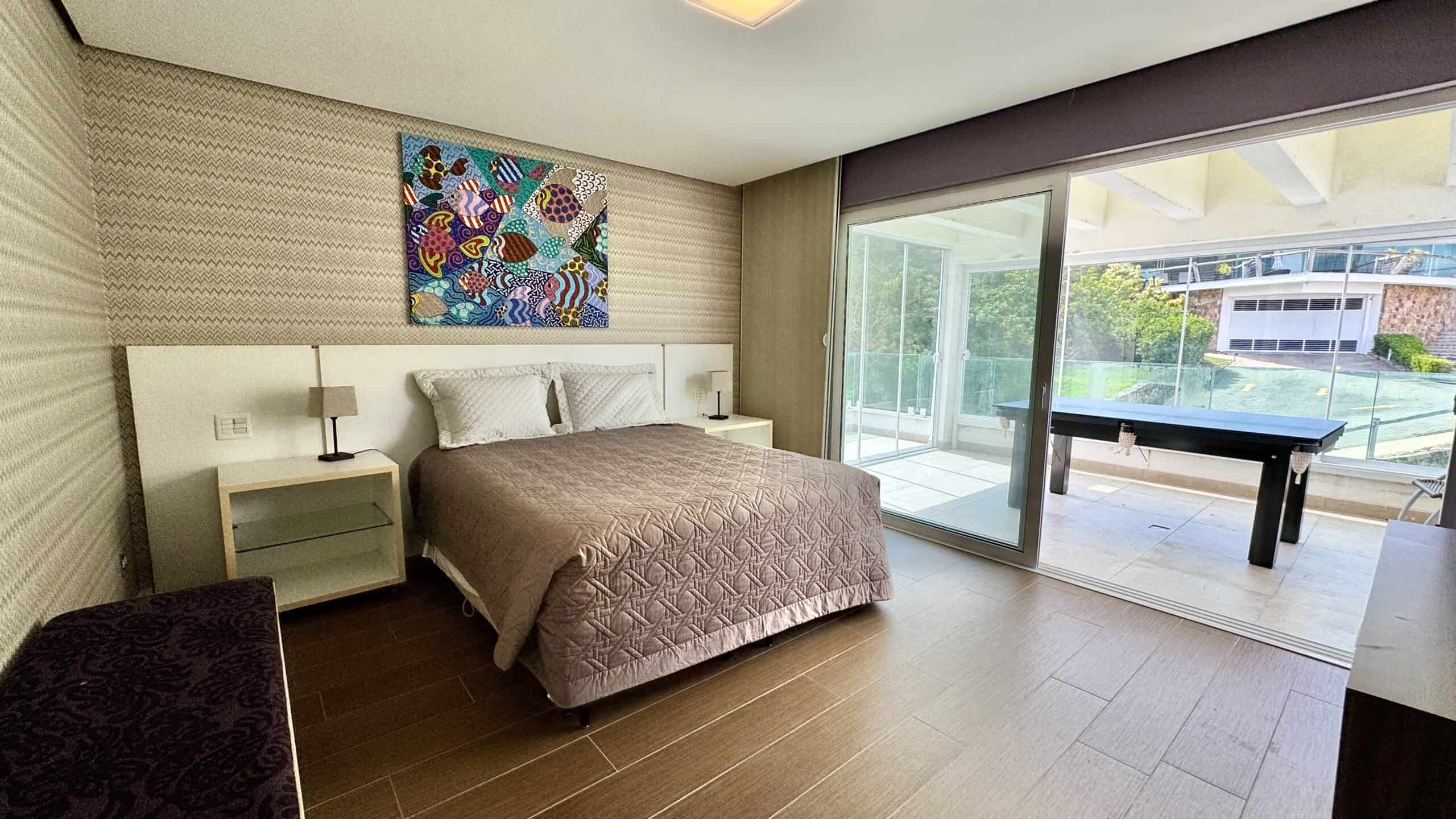 Com 311 m² privativos, o imóvel conta com 4 suítes, sendo uma delas de frente para a sacada com vista para o mar. Todos os quartos recebem o sol da manhã, e a suíte principal oferece ainda uma sacada privativa com vista para o verde.