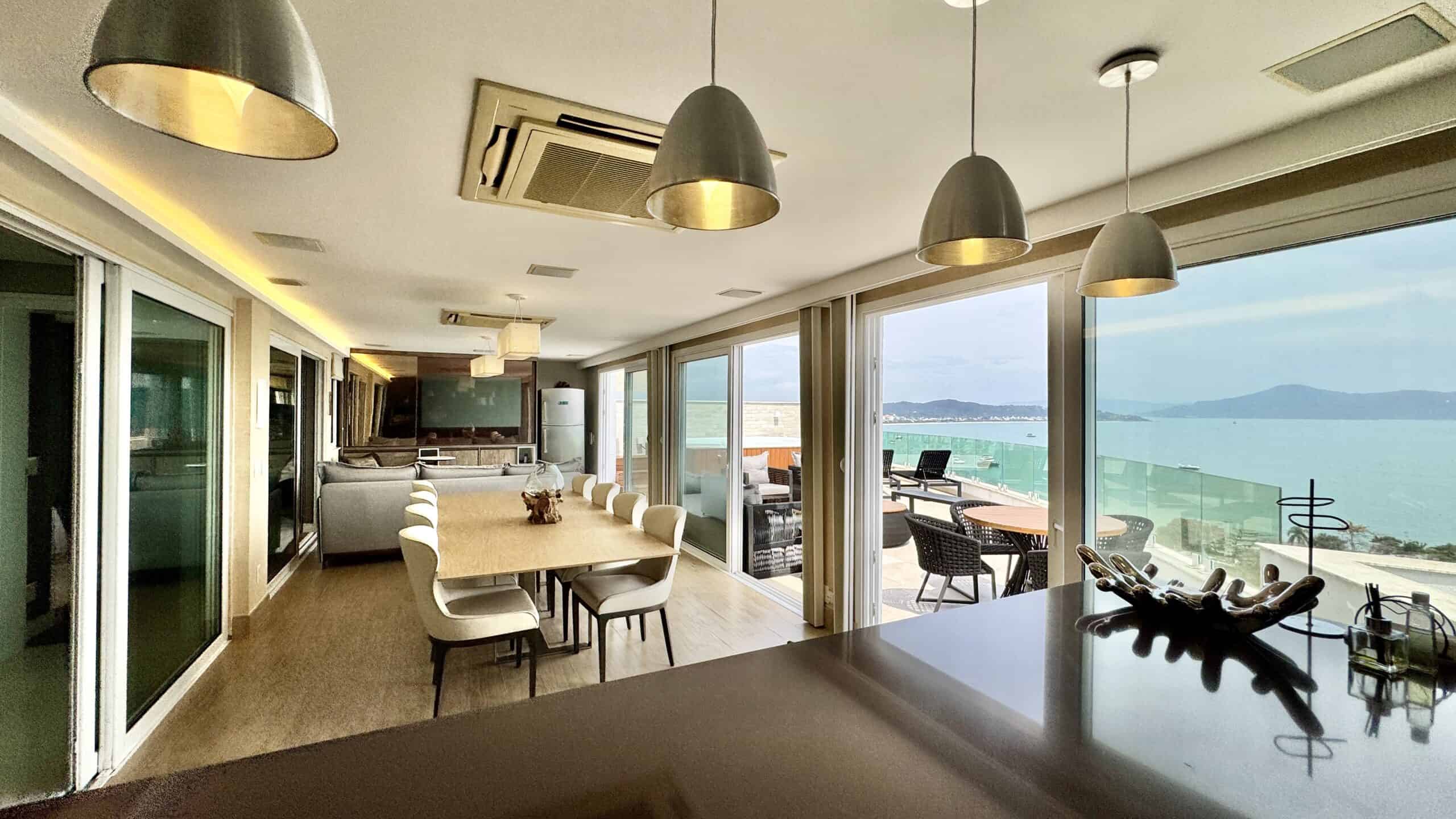 Cobertura linear à venda em Canajurê, Florianópolis, um verdadeiro refúgio de alto padrão junto ao mar.